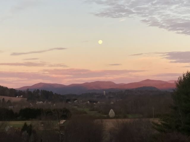 Prefab top-spec 2-story 4-BR 3 Bath house on top of sunny, breezy hill -- spectacular mountain views from 2 full porches with south slope / vinyard access just below, leading to the French Broad River floodplain pasture below. Existing fenced field, 2 acres, and additional pasture.