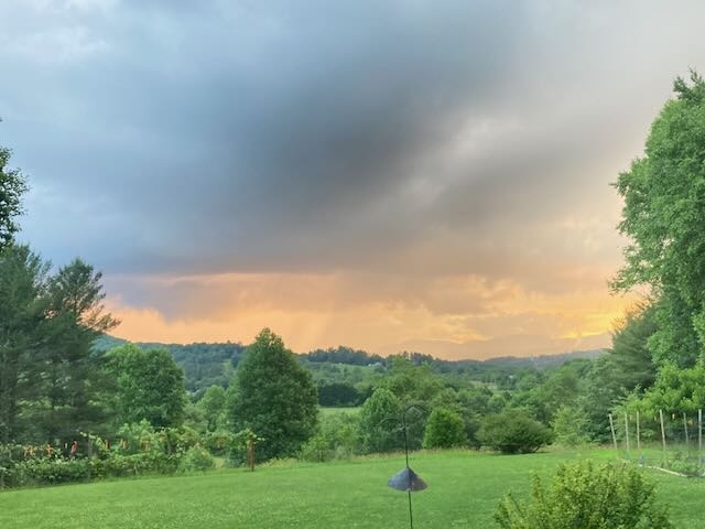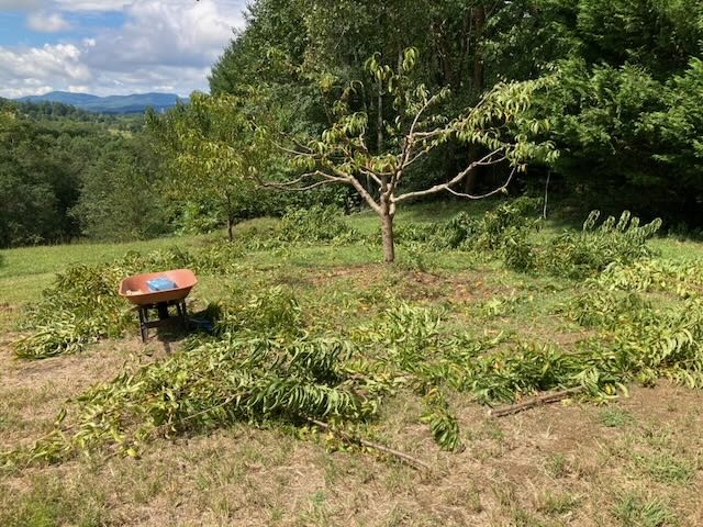 We are looking to sell our acreage with house, fields, fencing, pasture. Not developed or farmed but regularly bushogged -- still good for hay, beef, other crops. Majority of pasture below floods 1x / 1-2 years. Neighbors have wide fields in corn. Used to be beef, goats on our land below. Fence in good shape, 2 acres plus another ~1acre field. Does not border French Broad River, but river within walking distance through neighbors property below, friendly relationships with neighbors.