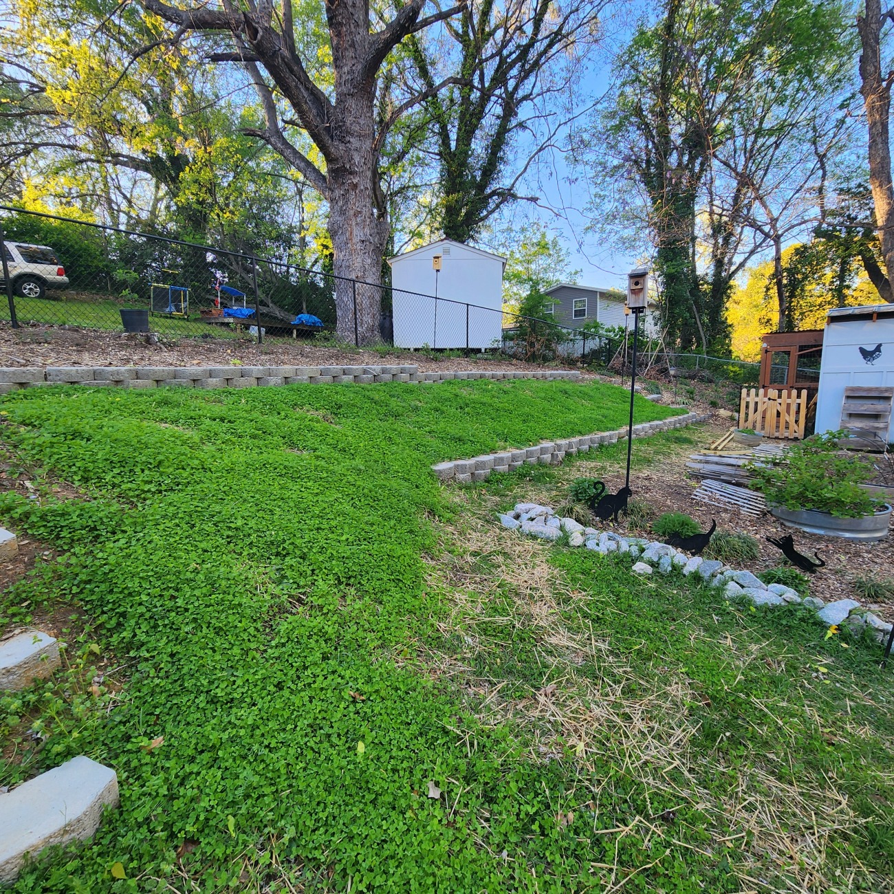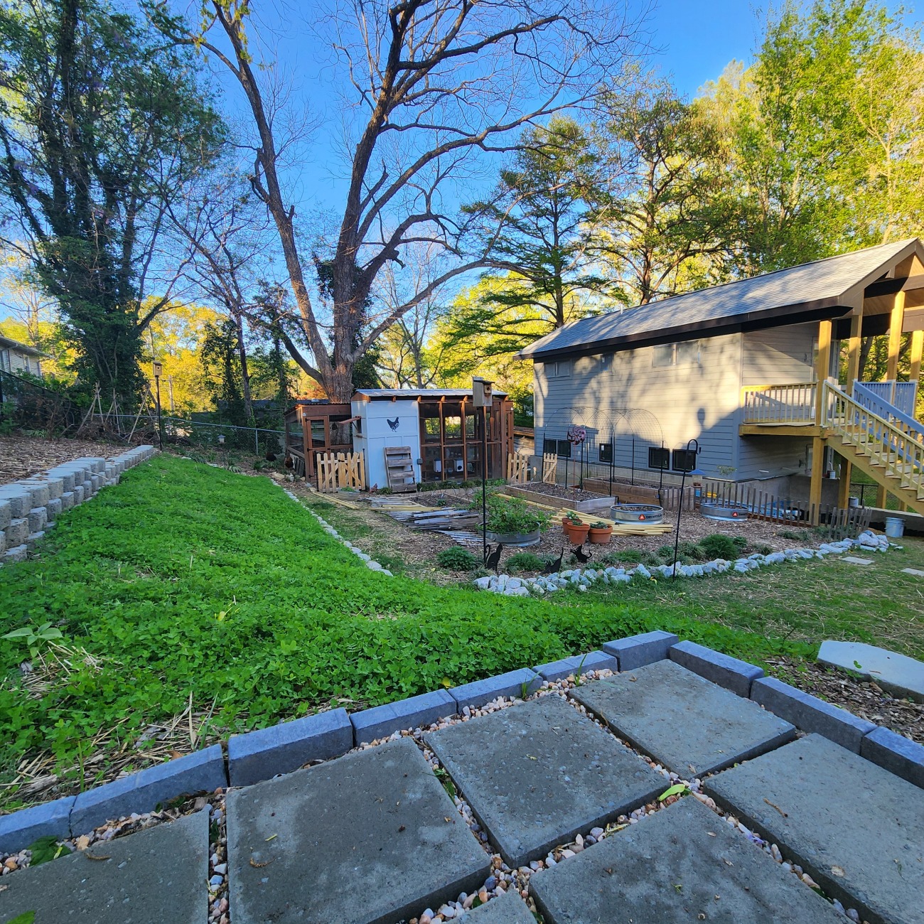 Property is a suburban residential lot with garden, native plantings, and chickens. There is an opportunity for a small apiary.